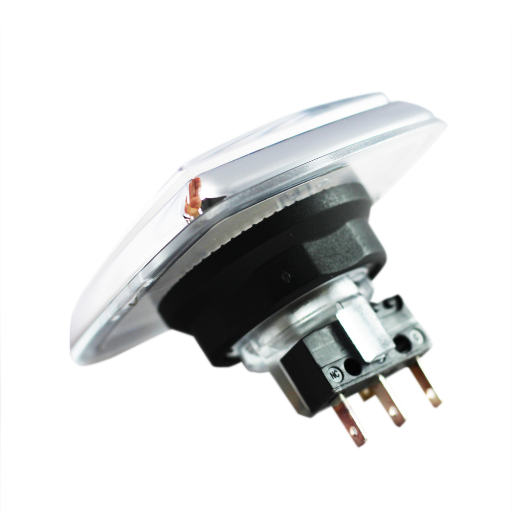 - Полированный хромированный ободок кнопки с полупрозрачной цветной шайбой, вмонтированной в ободок для обеспечения краевого люминесцентного эффекта.
