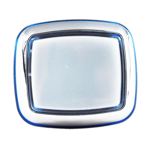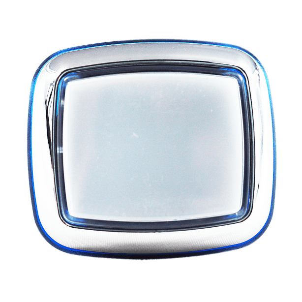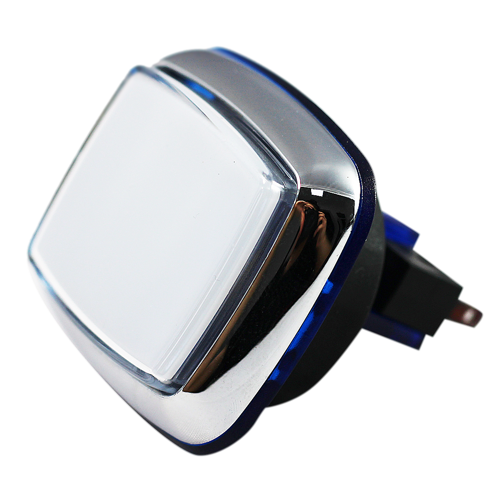 Кнопка малая квадра хромированная с синим контуром
