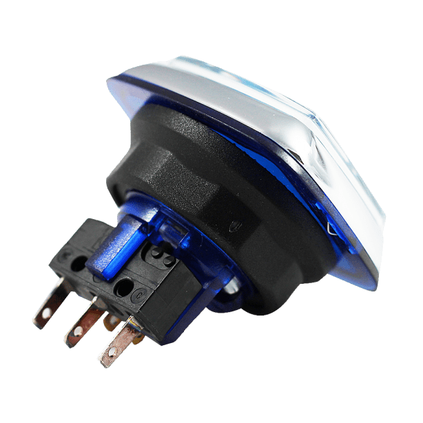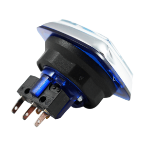 - Полированный хромированный ободок кнопки с полупрозрачной цветной шайбой, вмонтированной в ободок для обеспечения краевого люминесцентного эффекта.