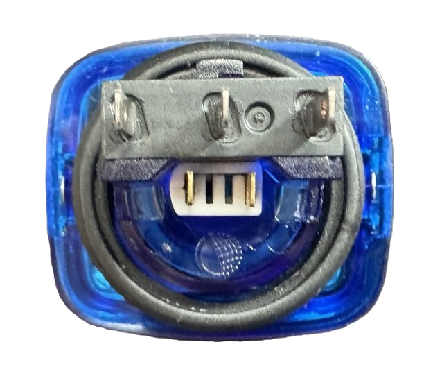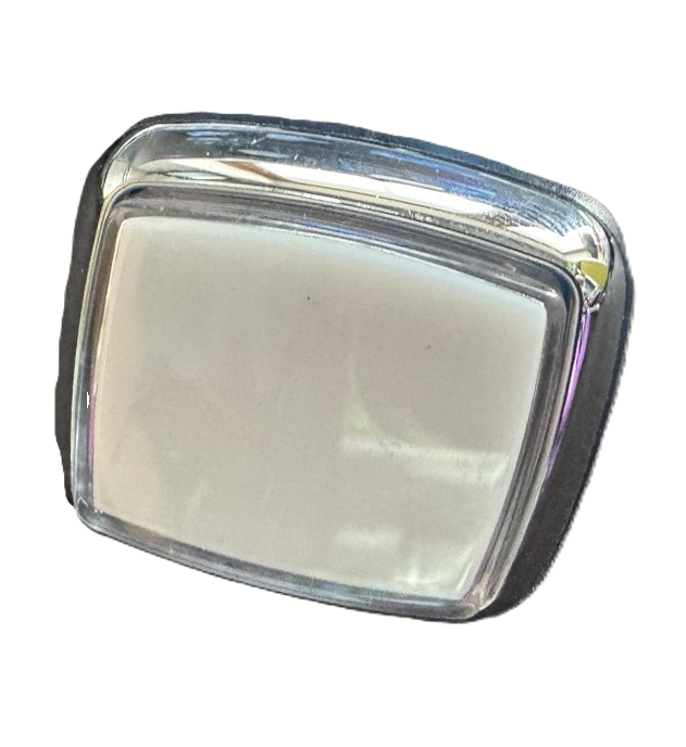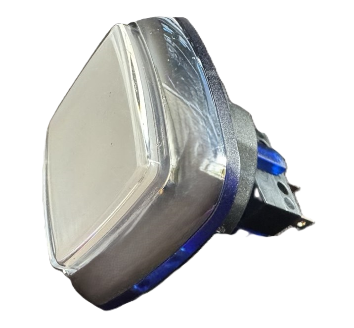 Кнопка малая прямоугольная хромированная с синим контуром