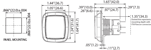 - Простота и гибкость монтажа на металлические панели управления с использованием либо Snap-Tab, либо традиционной стопорной гайки.